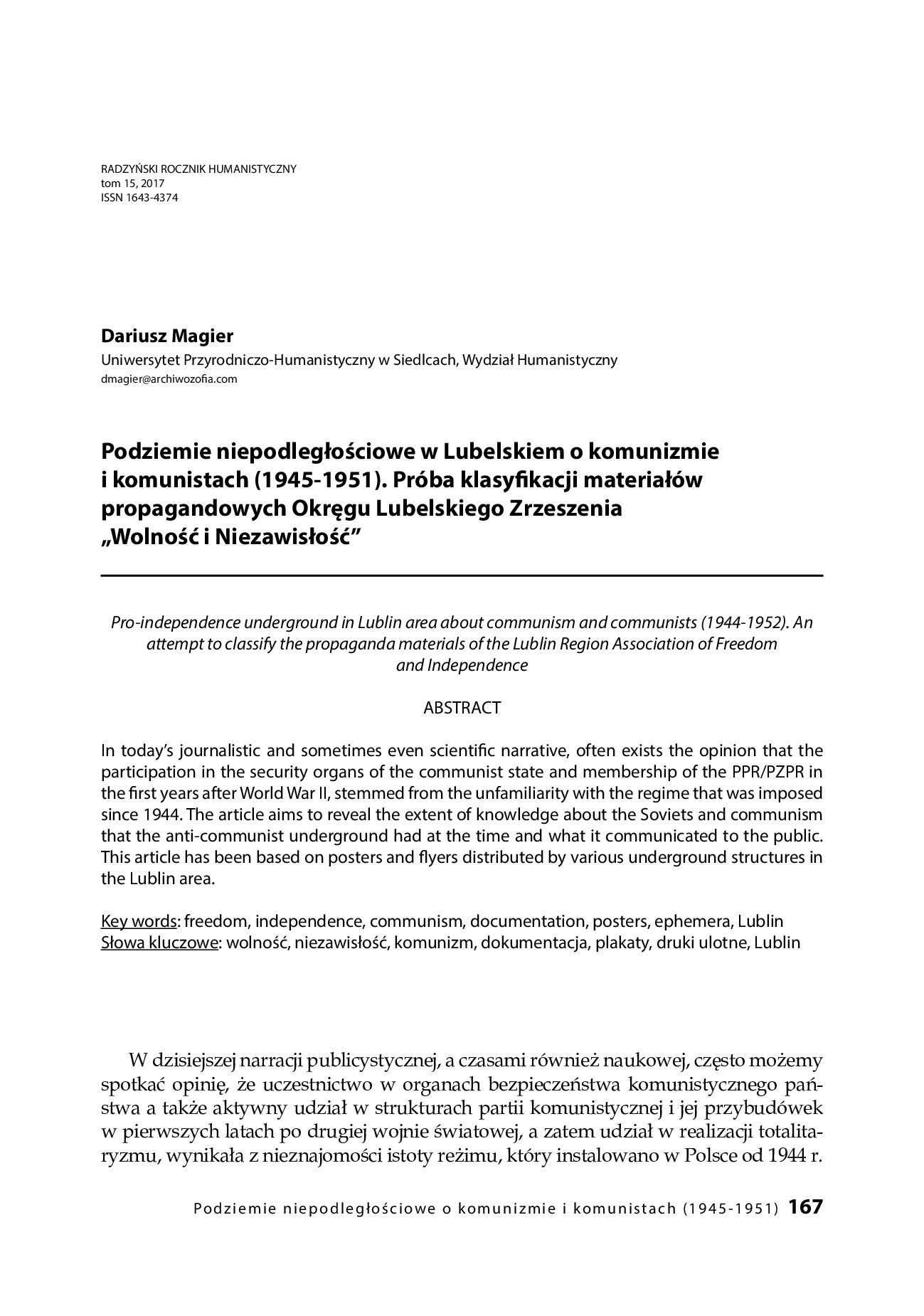 Podziemie niepodległościowe w Lubelskiem o komunizmie i komunistach (1945-51); cz. I